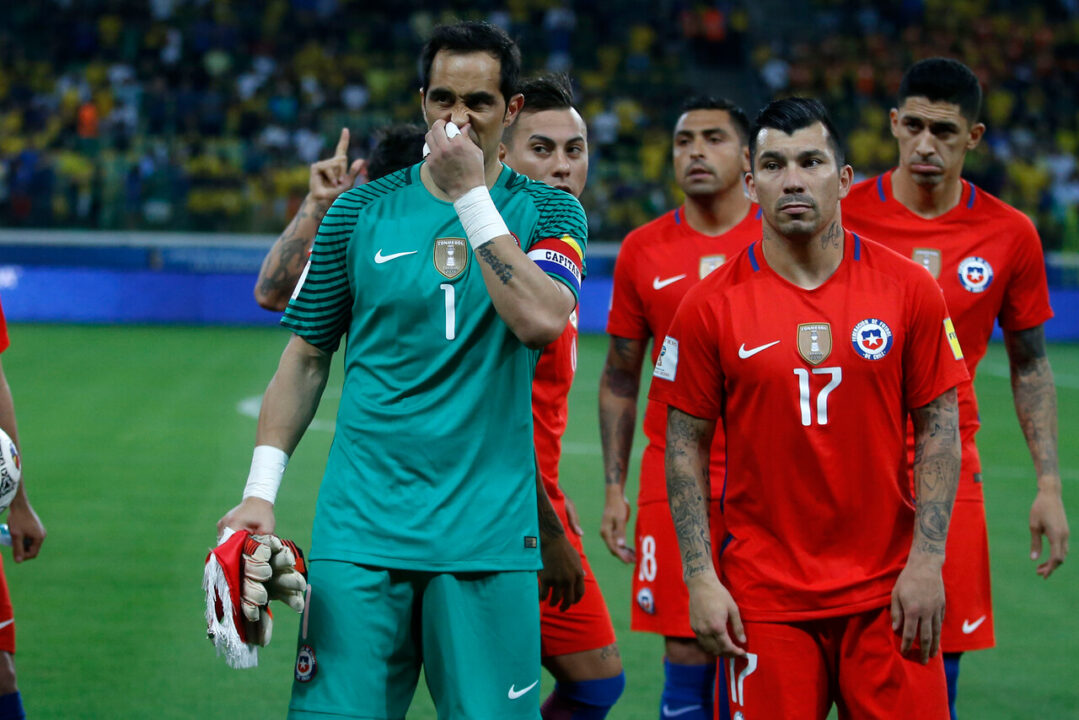 Claudio Bravo y Gary Medel se lamentan tras la eliminación del Mundial de 2018. Foto: Photosport